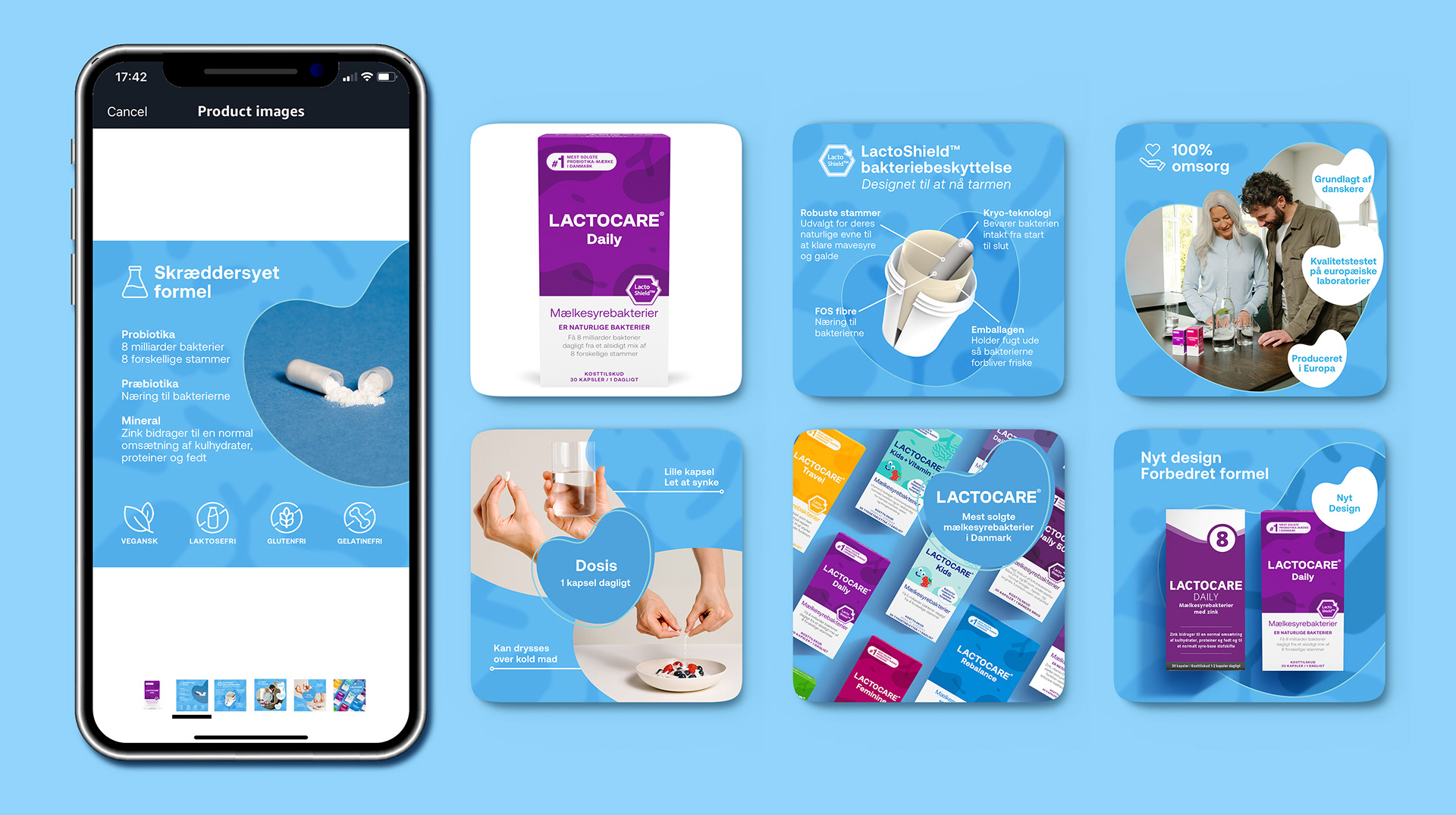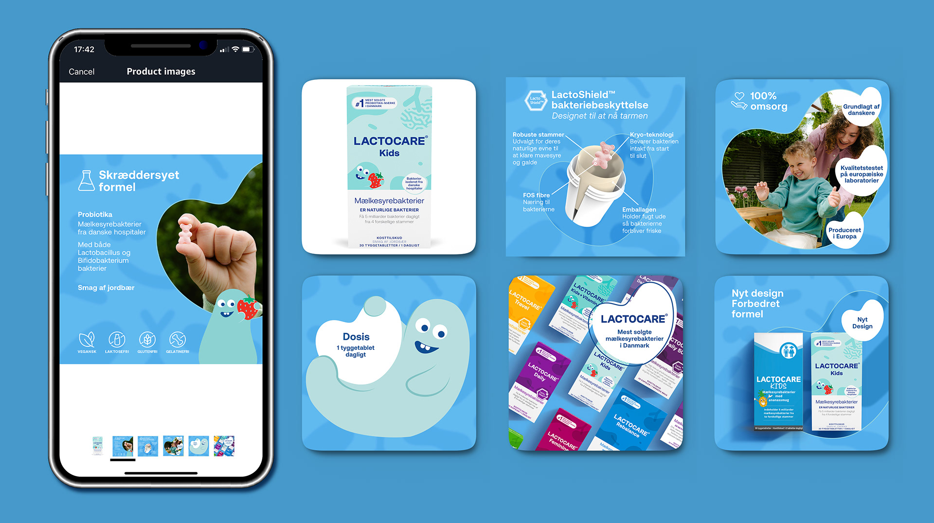 Lactocare® is Denmark's best-selling probiotic. I worked as part of a two person team to rollout the new external agency designed Lactocare® brand identity across multiple media formats.